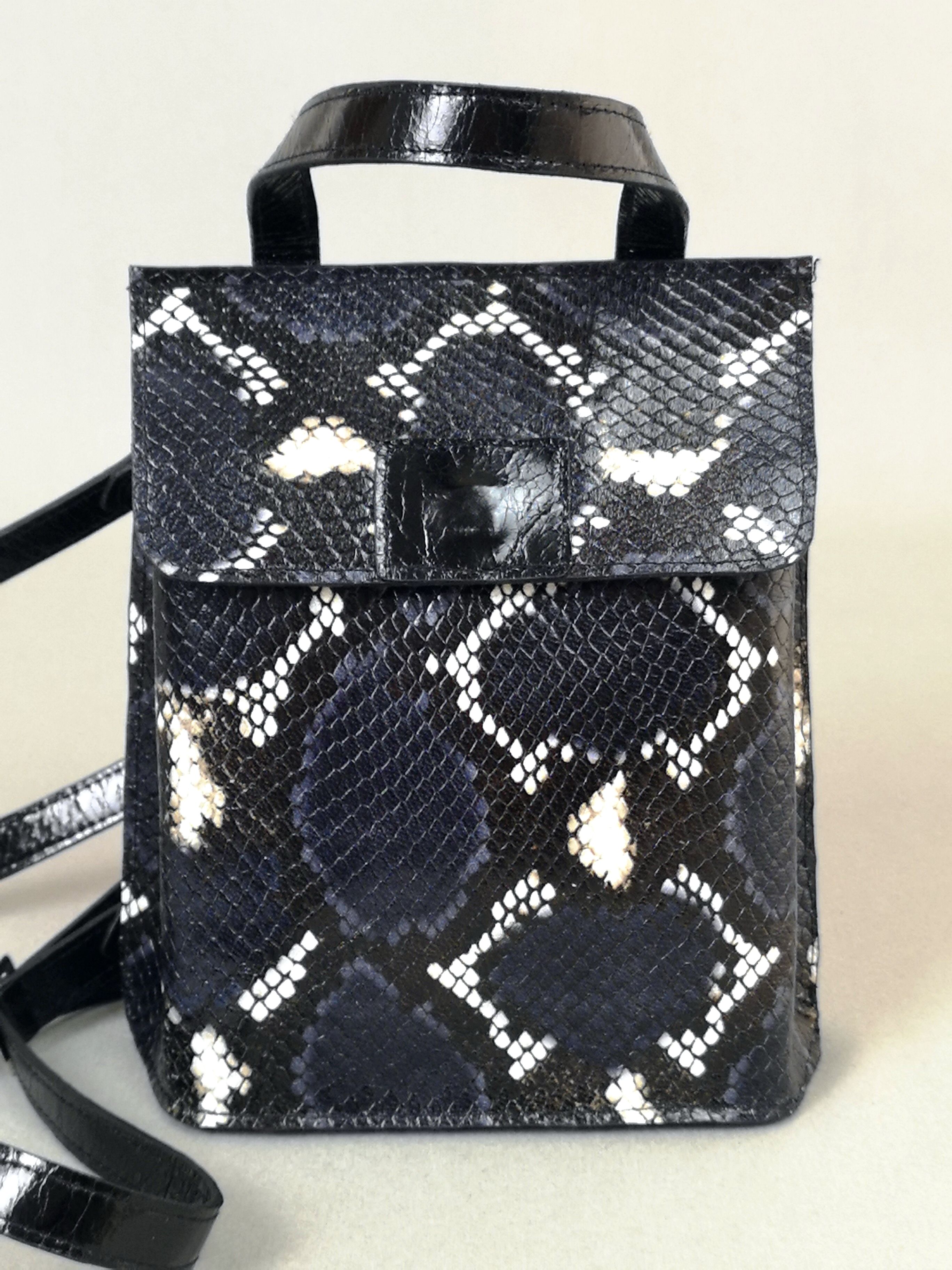 Ein ganz besonderes Design schmückt diesen Mini-Rucksack. Die Python-Optik erscheint in Blau, Schwarz und Weiß. Die Schlangen-Prägung lässt es noch echter wirken. Für alle, die die Wildnis lieben.