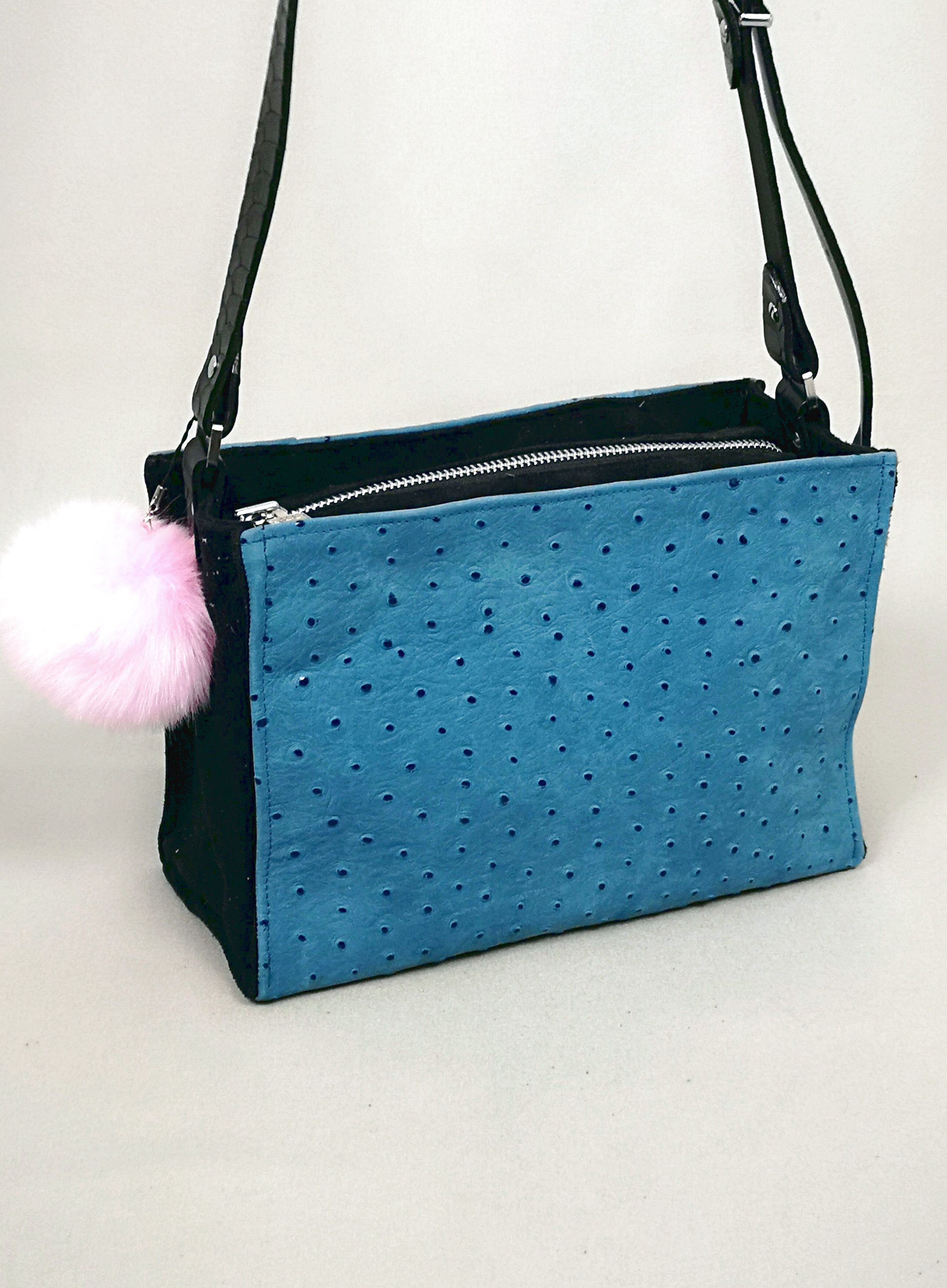 In dezentem Graublau kommt diese Tasche im Nature-Look daher. Der 3D-Effekt mit den Pünktchen verstärkt den Straußenleder-Effekt. Mit ihren vielen Fächern ist sie ein kleines Organisations-Talent.